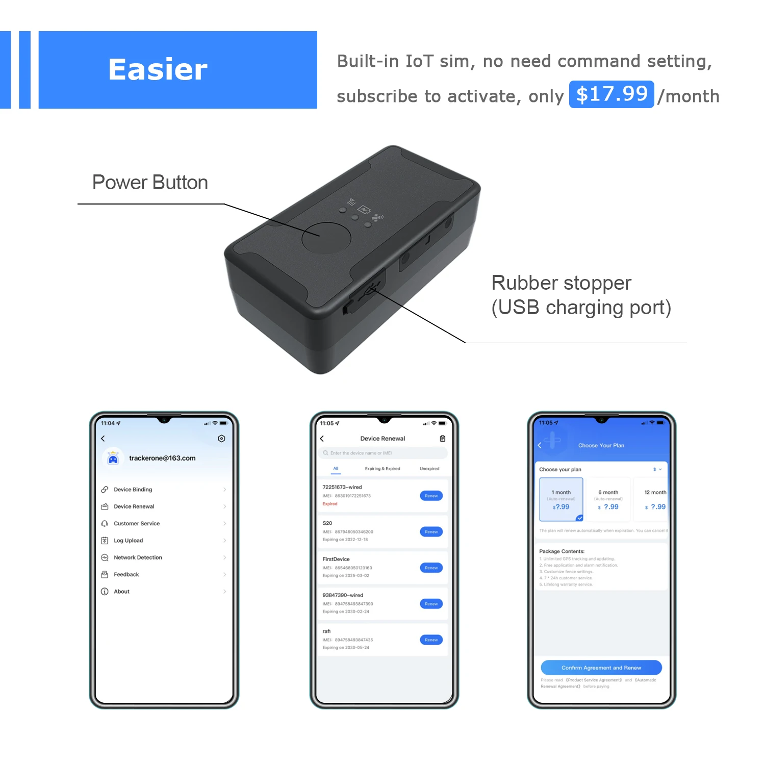 Our gps tracker subscription fee is lower than others, the monthly fee is $17.99, and the long-term prepayment is as low as $9.17/month.